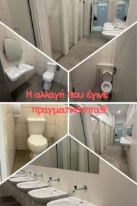 Οι τουαλέτες μαθητών/τριών και εκπαιδευτικών ανακατασκευάστηκαν εκ βάθρων — ένα έργο που δεν είχε γίνει ποτέ στα 33 χρόνια λειτουργίας της σχολικής μας μονάδας.