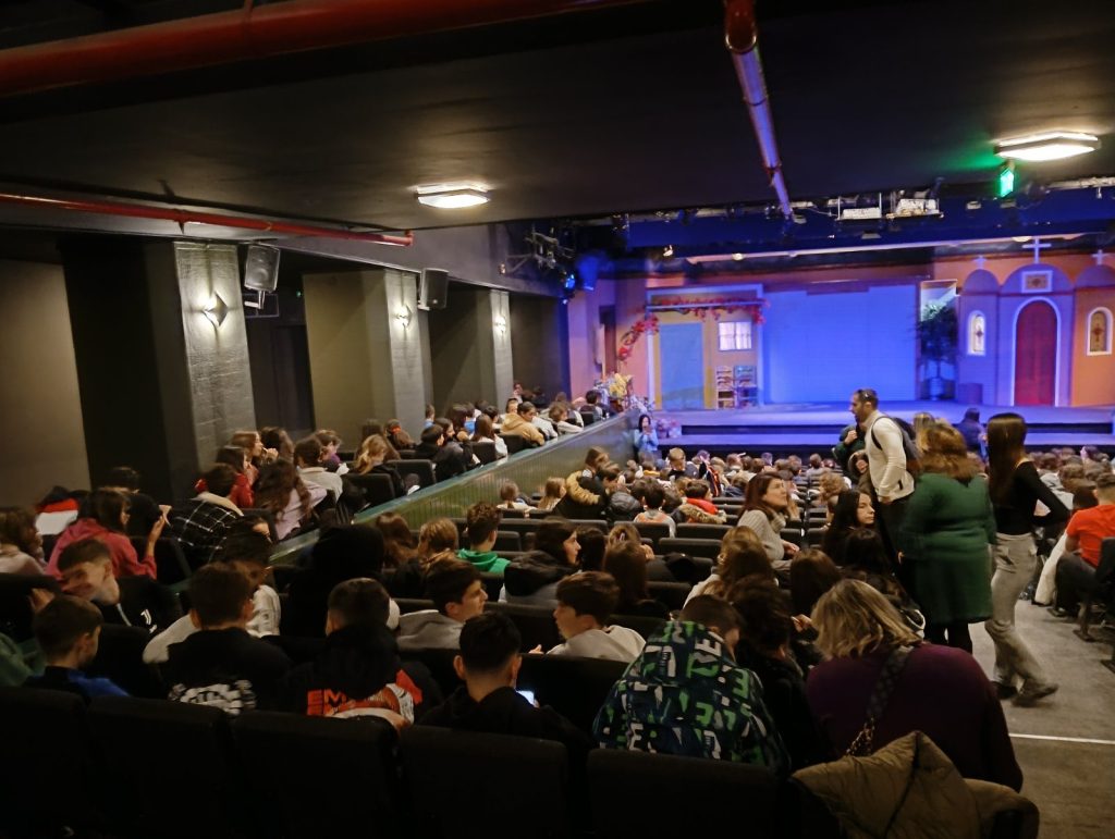 Η Α΄Γυμνασίου παρακολούθησε , στις 22 Δεκεμβρίου 2025, σε θεατρική μεταφορά το εμβληματικό έργο της Ζωρζ Σαρή «Τα Στενά Παπούτσια». Για πρώτη φορά το αγαπημένο βιβλίο μεταφέρεται στη σκηνή, ζωντανεύοντας με παραστατικότητα τις αγωνίες, τις χαρές και τα μπερδέματα των παιδιών, όταν αφήνουν πίσω την παιδική ηλικία και κάνουν τα πρώτα τους βήματα προς την εφηβεία. Τα Στενά Παπούτσια φωτίζουν τις στιγμές που γεννιούνται πρωτόγνωρα συναισθήματα, η φιλία δοκιμάζεται και το μεγάλωμα φαντάζει συναρπαστικό αλλά και δύσκολο. Με σύγχρονη θεατρική γραφή, μουσική, δράση και σκηνικά που κεντρίζουν τη φαντασία, δίνεται πνοή σε ένα από τα πιο αγαπημένα διαχρονικά έργα της ελληνικής λογοτεχνίας για παιδιά και εφήβους.