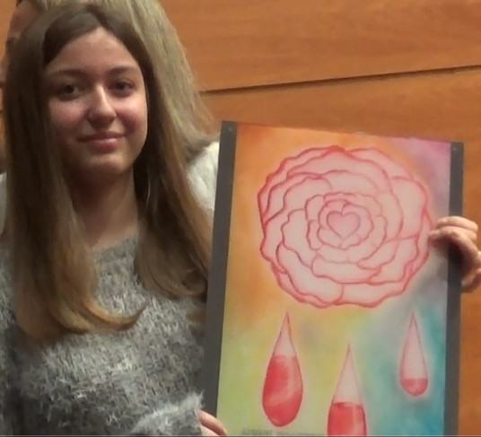 Συγχαρητήρια στην Κατερίνα Λάμπρου, μαθήτρια της Γ’ Γυμνασίου του σχολείου μας, για τη συμμετοχή της και τη βράβευσής της στον Διαγωνισμό καθώς και στην κα Φωσκολάκη, καθηγήτρια εικαστικών του σχολείου μας που την καθοδήγησε κατά τη διάρκεια δημιουργίας του έργου.
