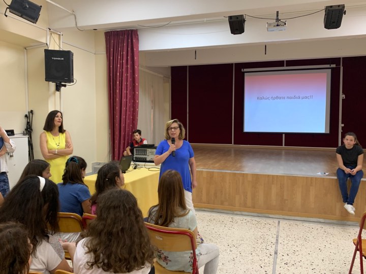 Τον λόγο πήραν οι Υποδιευθύντριες, κα Πριτσιούλη και κα Δέτσικα, και κατόπιν η κα Ζερεφού και η κα Κυριακοπούλου, οι οποίες έκαναν μια σύντομη παρουσίαση των εκπαιδευτικών προγραμμάτων, για τα οποία είναι υπεύθυνες. Προβλήθηκε επίσης βίντεο με τις σημαντικότερες στιγμές των δράσεων, εκδηλώσεων, εκδρομών και προγραμμάτων μας. Χωρισμένοι σε ομάδες οι μαθητές των δύο Δημοτικών και με ξεναγούς τους εθελοντές μαθητές του σχολείου μας, περιηγήθηκαν σε όλους τους εξωτερικούς και εσωτερικούς χώρους του σχολείου, με ιδιαίτερη έμφαση στην Αίθουσα Διαμεσολάβησης, όπου η κα Ζερεφού τους έκανε βιωματικό παιχνίδι για τα συναισθήματα, στη Βιβλιοθήκη, στην Αίθουσα Τεχνολογίας με την έκθεση των έργων της Α’ Γυμνασίου, στον λαχανόκηπο και στον κήπο με τα αρωματικά μας φυτά, στη Βιβλιοθήκη, στην αίθουσα Πληροφορικής και στην αίθουσα Φυσικών Επιστημών. Η συνάντηση ολοκληρώθηκε με ένα μικρό κέρασμα που είχαμε ετοιμάσει για τους φιλοξενούμενούς μας.